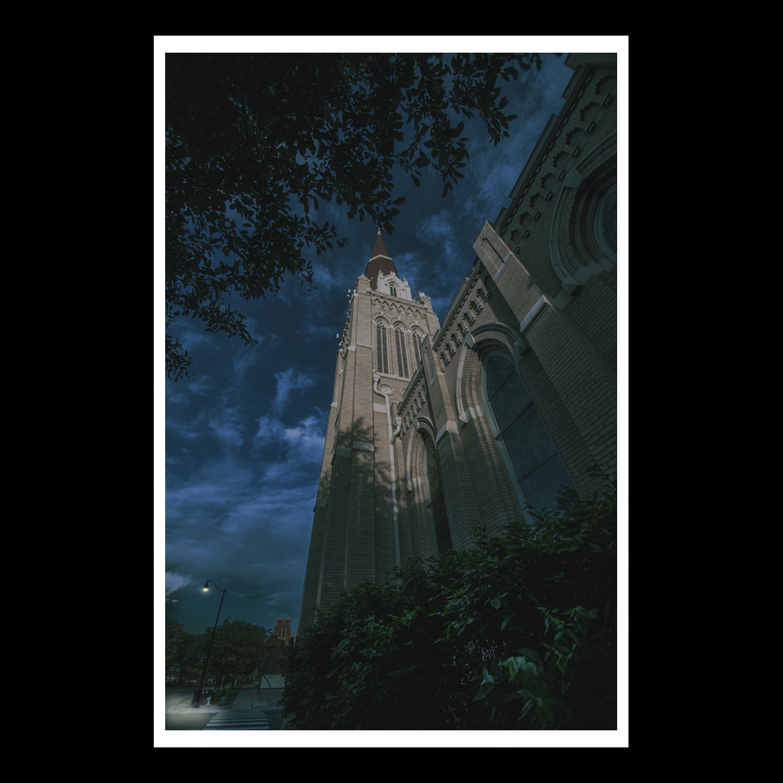 Distant Church in the City - AfterThat's why I think Nope really sold the day for night effect for me. The combination of he infrared digital with the colored film camera was really genious. However, filming with another camera with an ND filter and about four stops under exposed might produce the same desired effect without infrared. Another experiment to try is to composite a negative image for the sky but colored to dark blue.